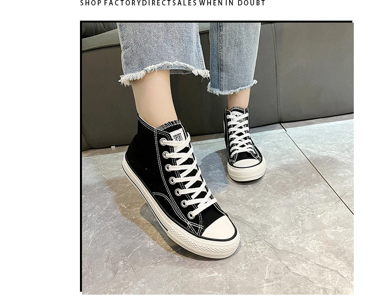 Women's Casual Canvas Shoes 2023 Spring Autumn New Designer Brand Lace-up Flat Shoes High-Top Non-Slip Sneakers Zapatos De Mujer