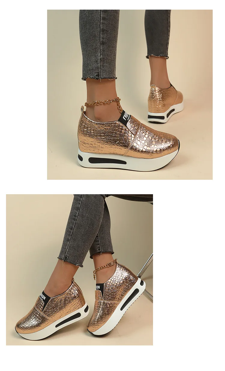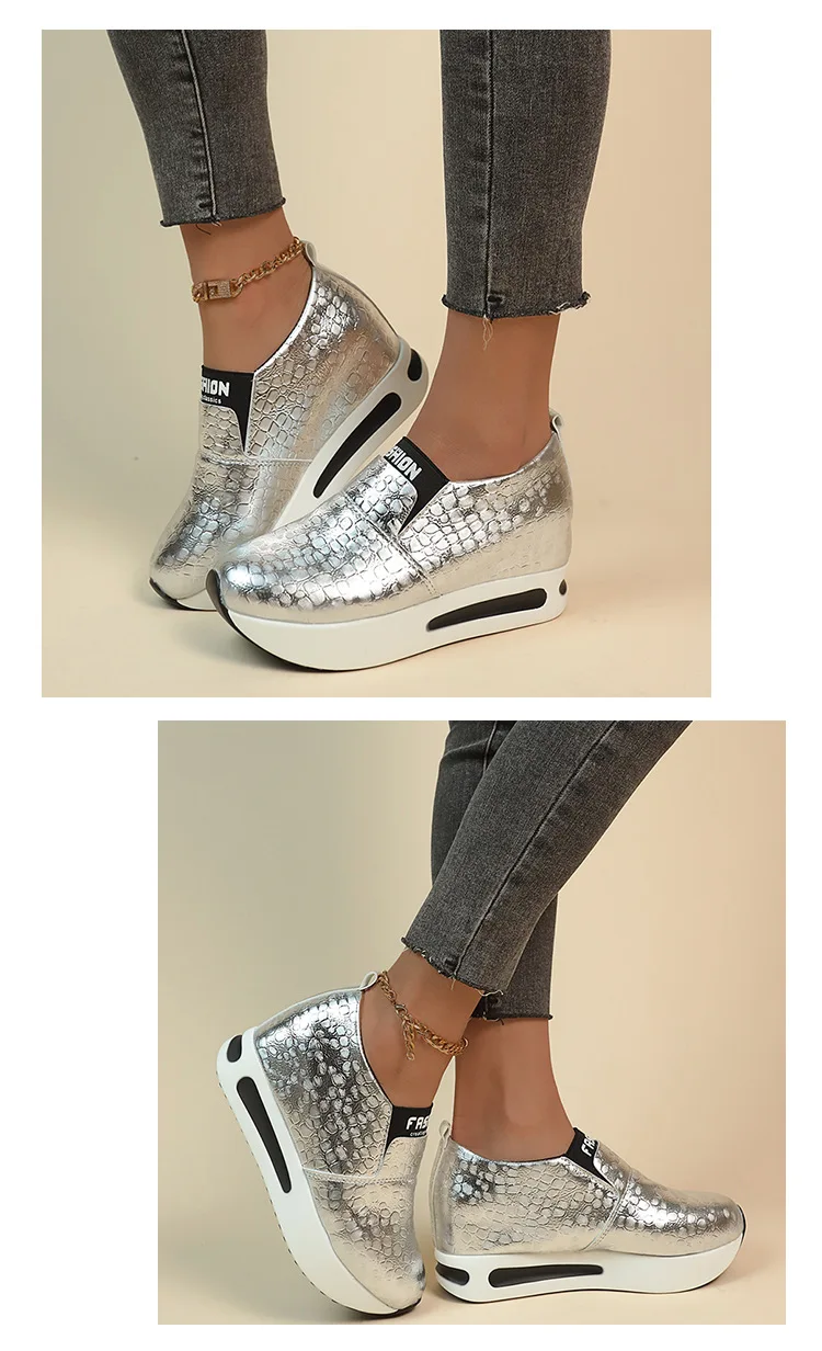 Women's Casual Shoes New Thick Bottom Walking Sneakers Fashion Round Head Solid Colour Slip on Loafers Zapatos Para Mujer