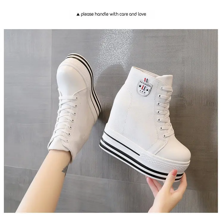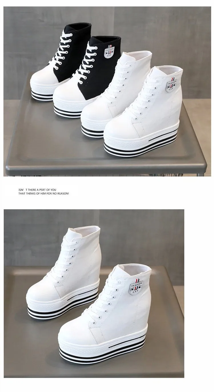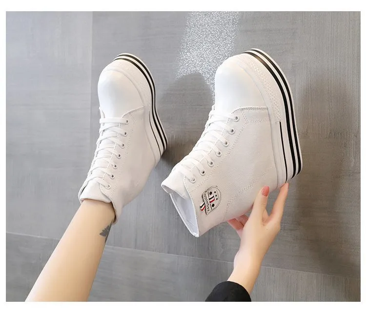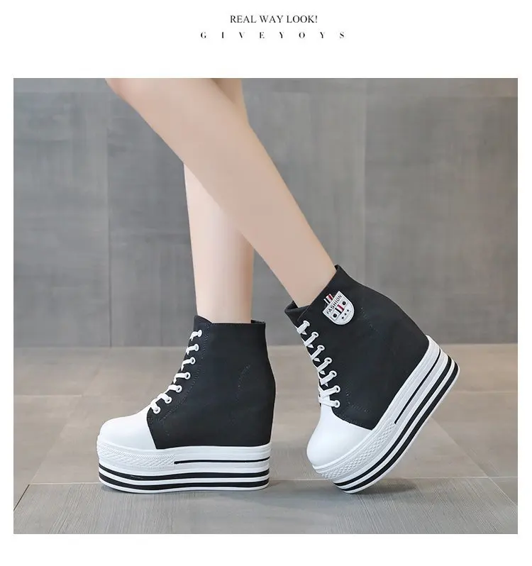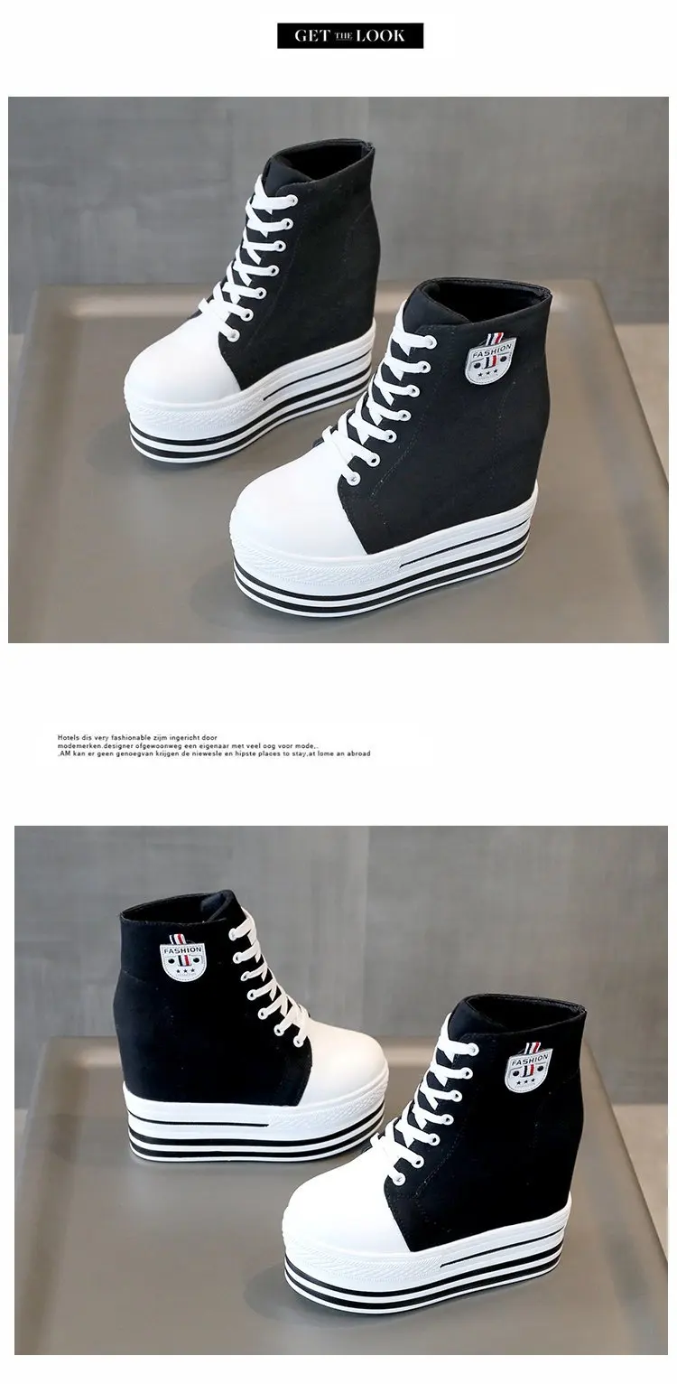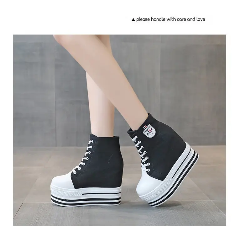 Women's High Canvas Sneakers Chunky Platform Shoes Black Lace-Up Thick Bottom Internal Increase Autumn Female Casual Shoes Hot