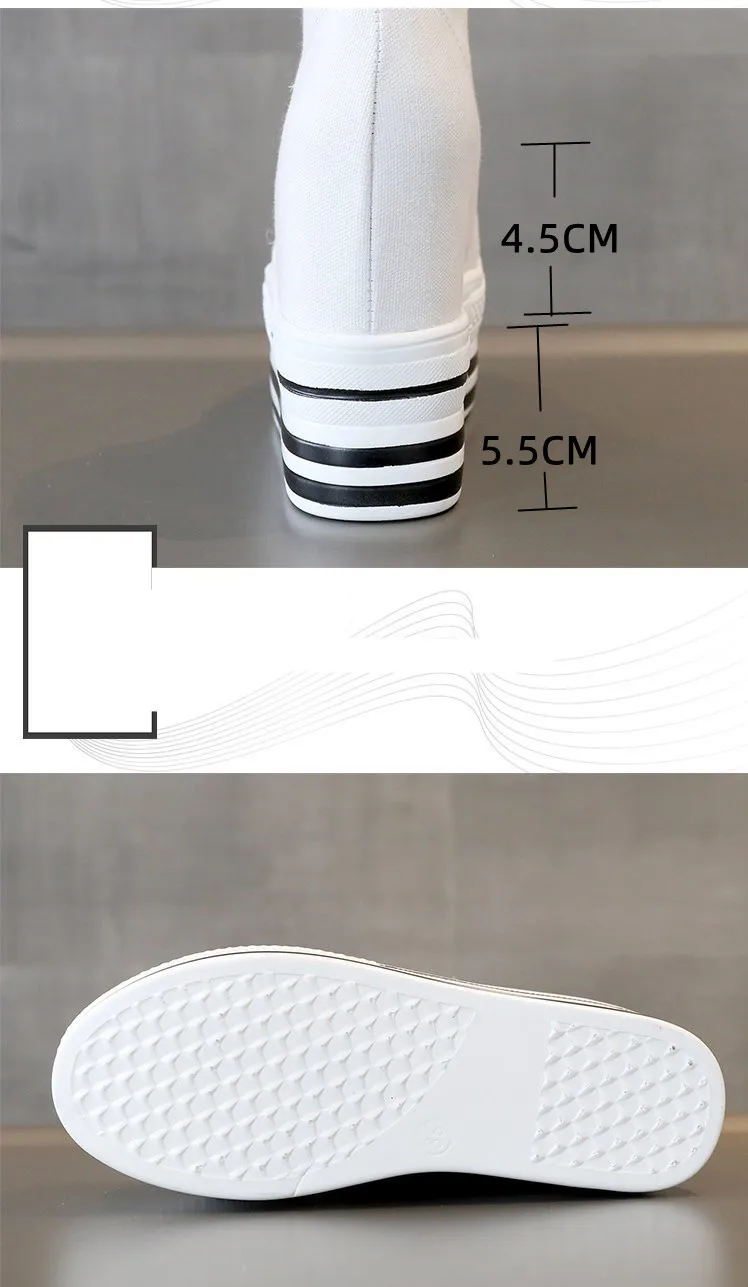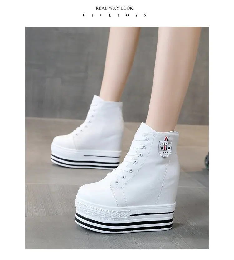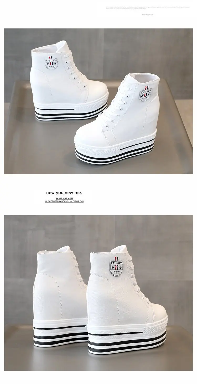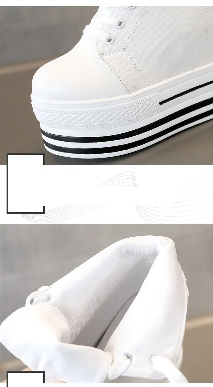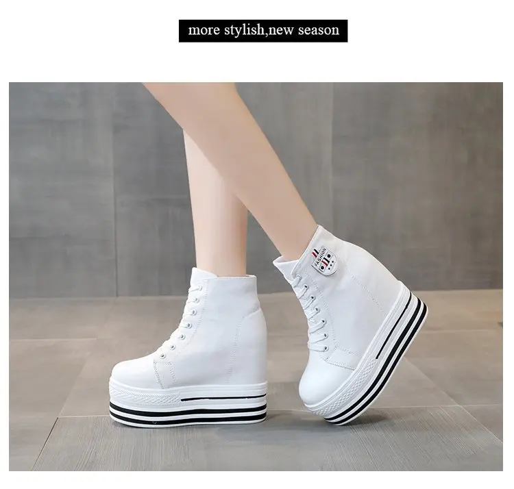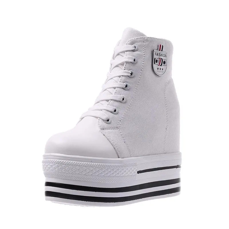 Women's High Canvas Sneakers Chunky Platform Shoes Black Lace-Up Thick Bottom Internal Increase Autumn Female Casual Shoes Hot