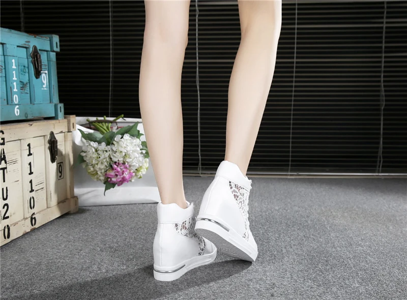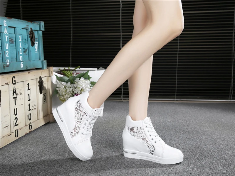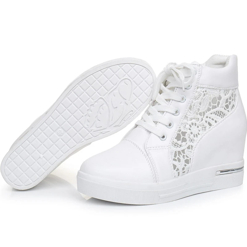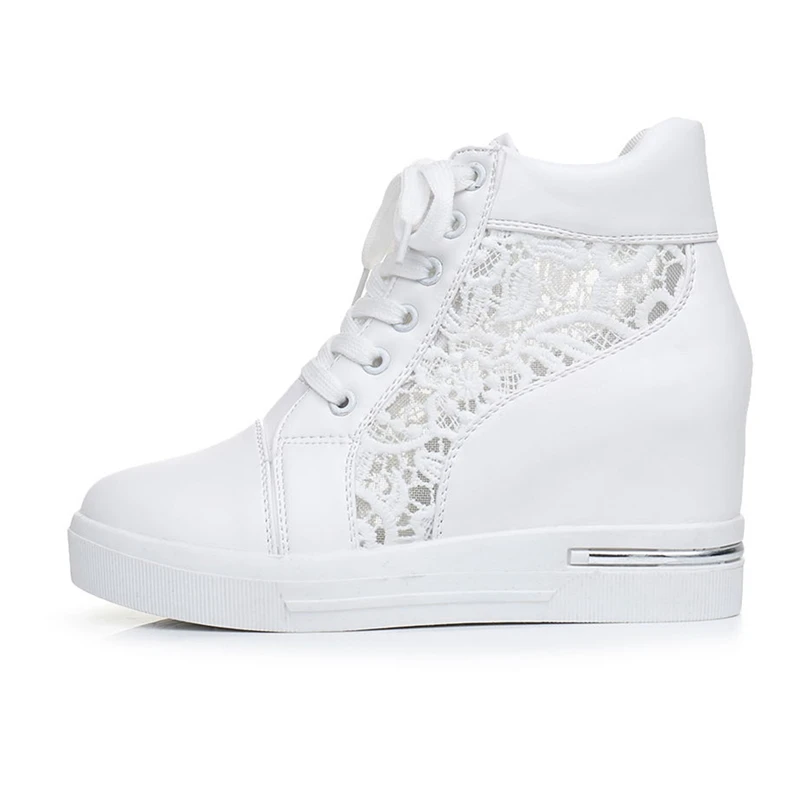 Women's Leather High-heeled Shoes Wedge Platform Sports Shoes Rubber Cloth Shoes Height Silver