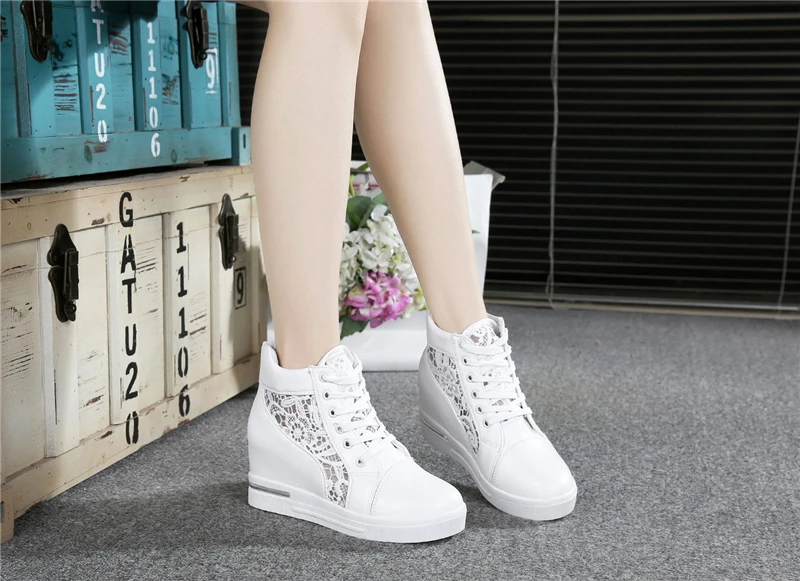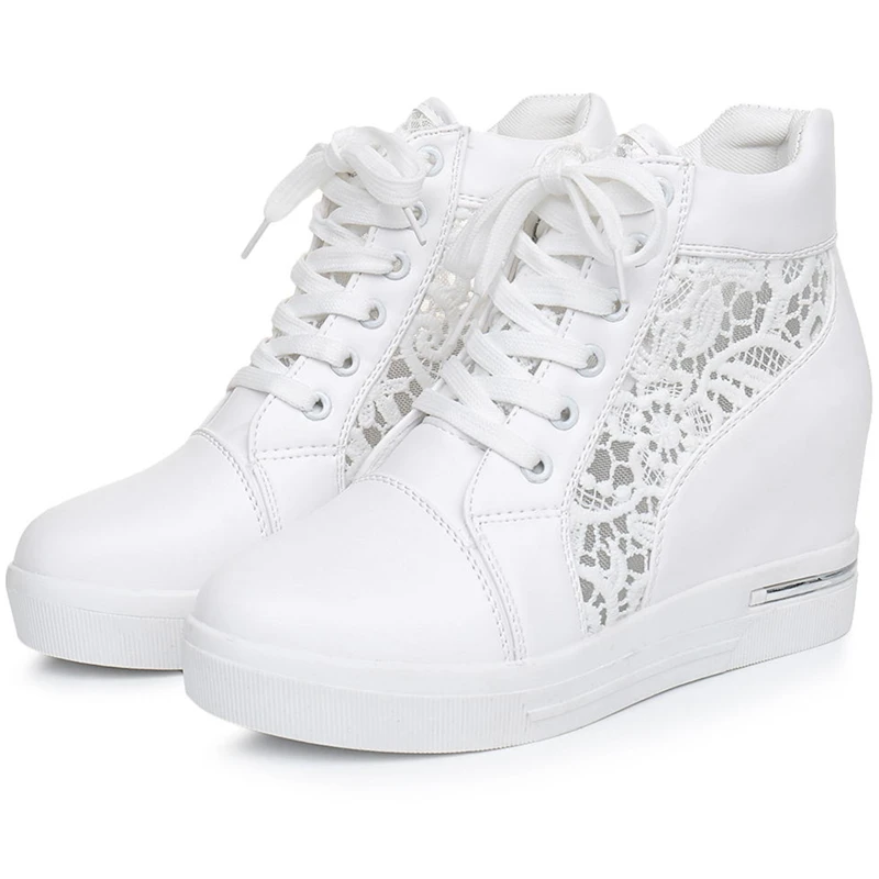 Women's Leather High-heeled Shoes Wedge Platform Sports Shoes Rubber Cloth Shoes Height Silver