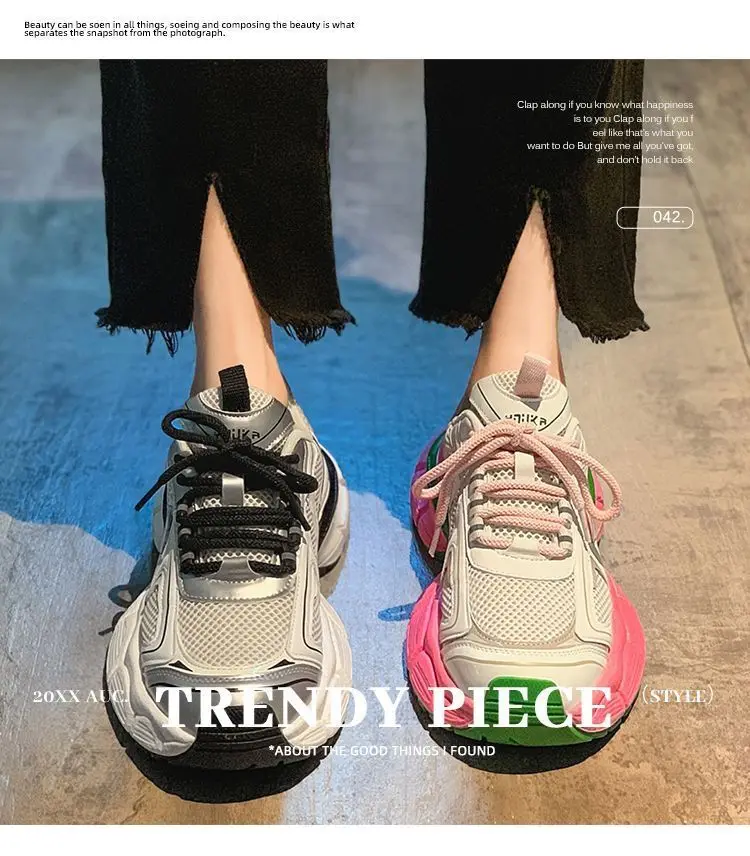 Women's Luxury Thick Sole Mesh Breathable Sneakers Fashion Casual Shoes Sneakers Women's Thick Sole Tennis Vulcanized Zapatillas