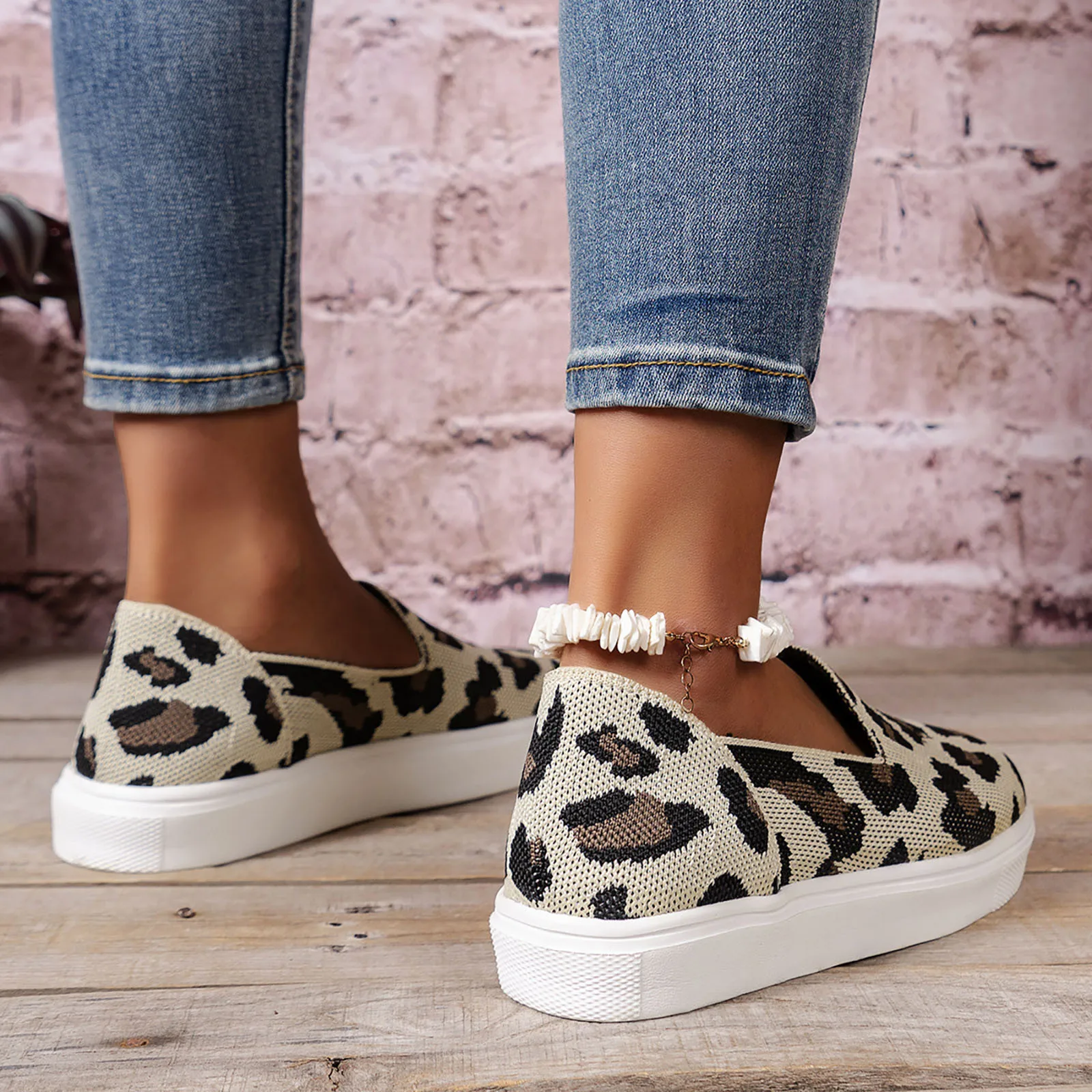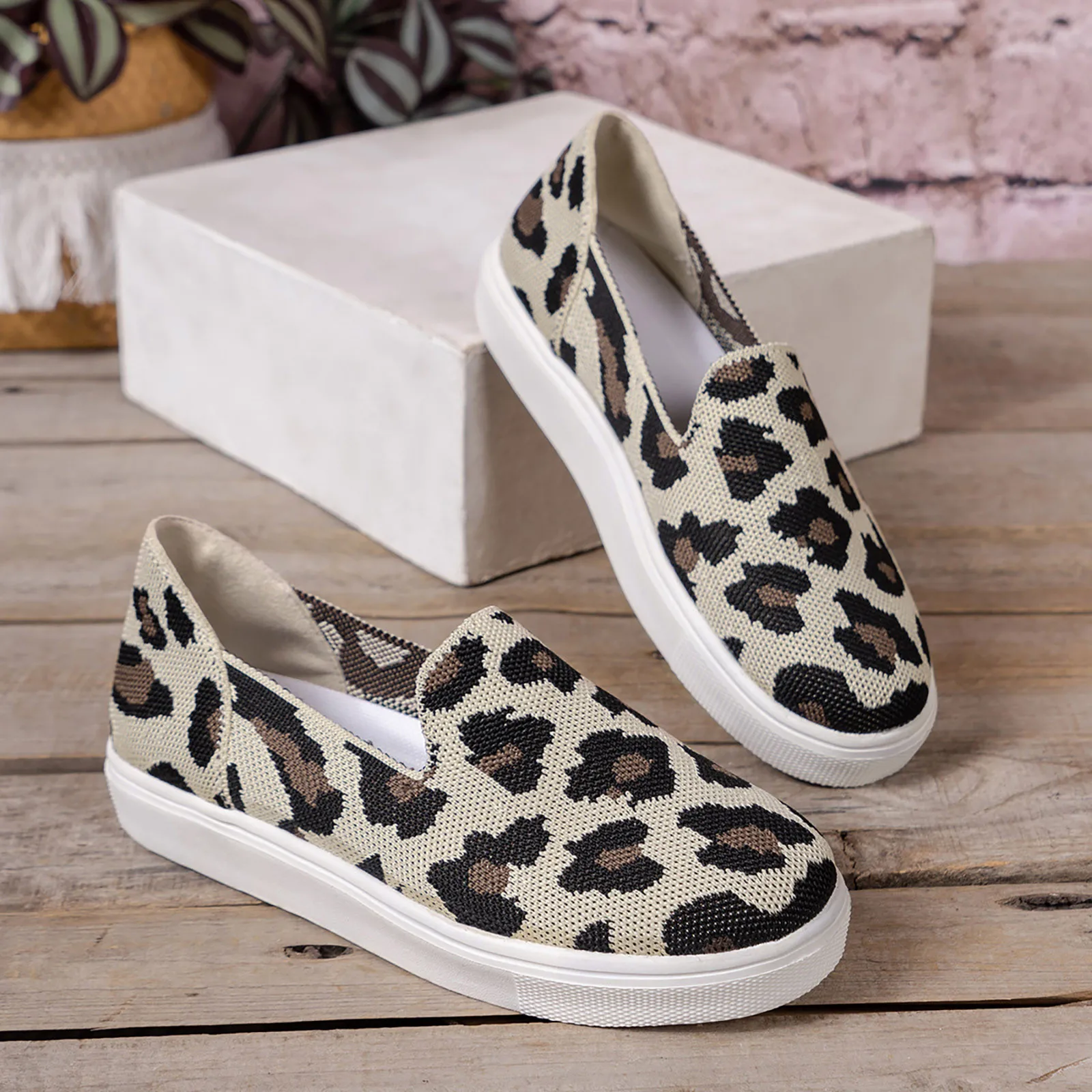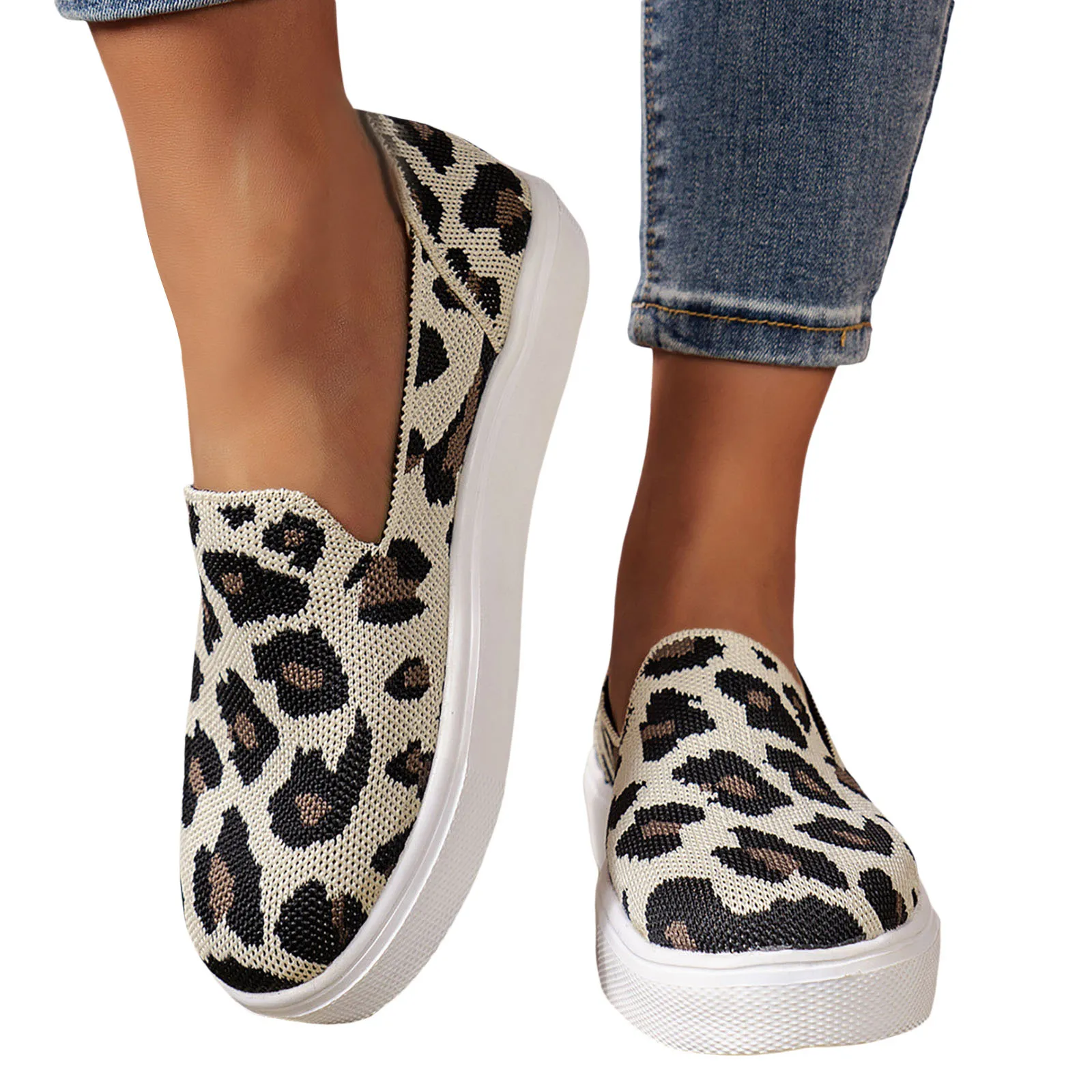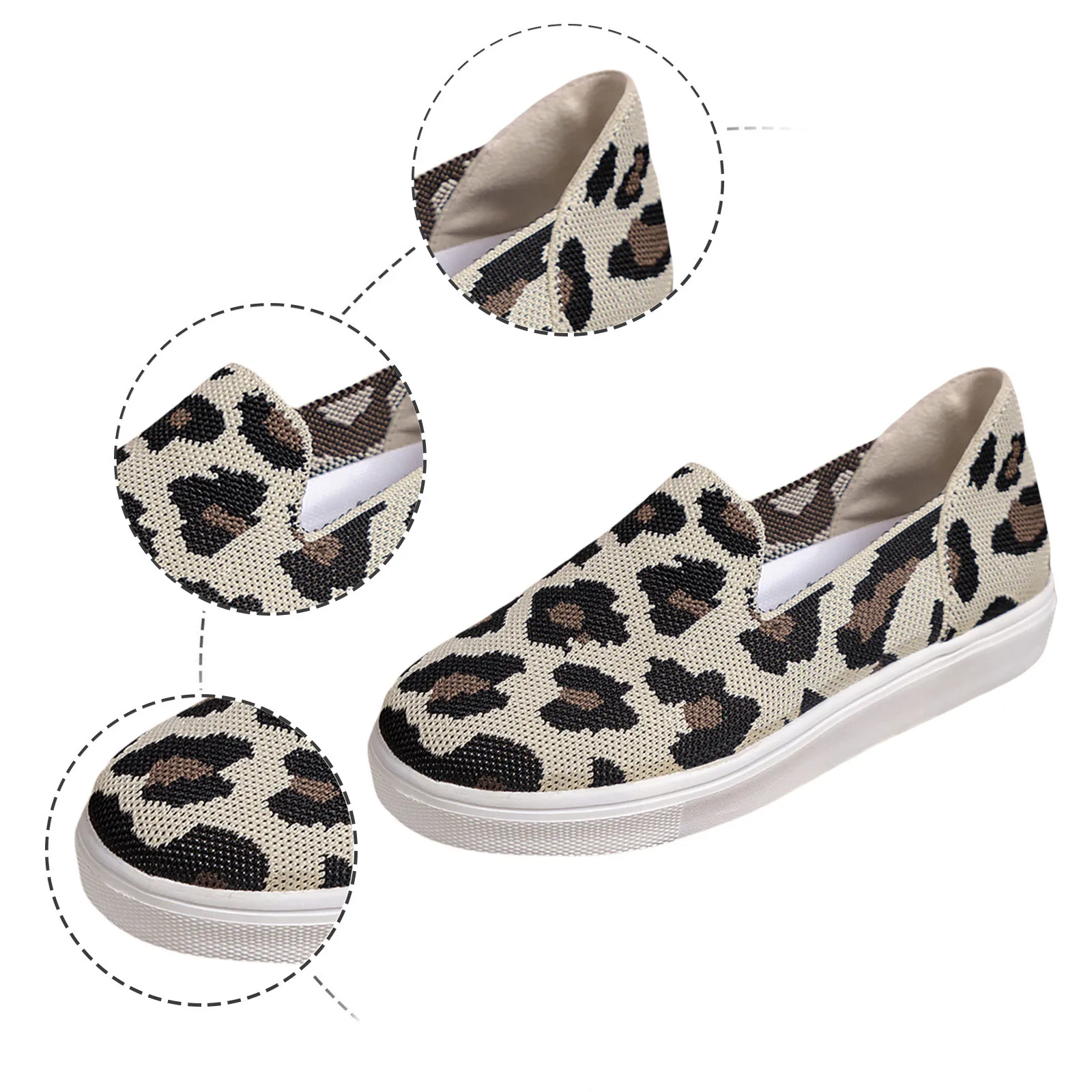 2024 Spring New Thick Sole Shoes Leopard Pattern Sexy Mesh Shoes Foreign Trade Shallow Mouth Casual Single Shoes