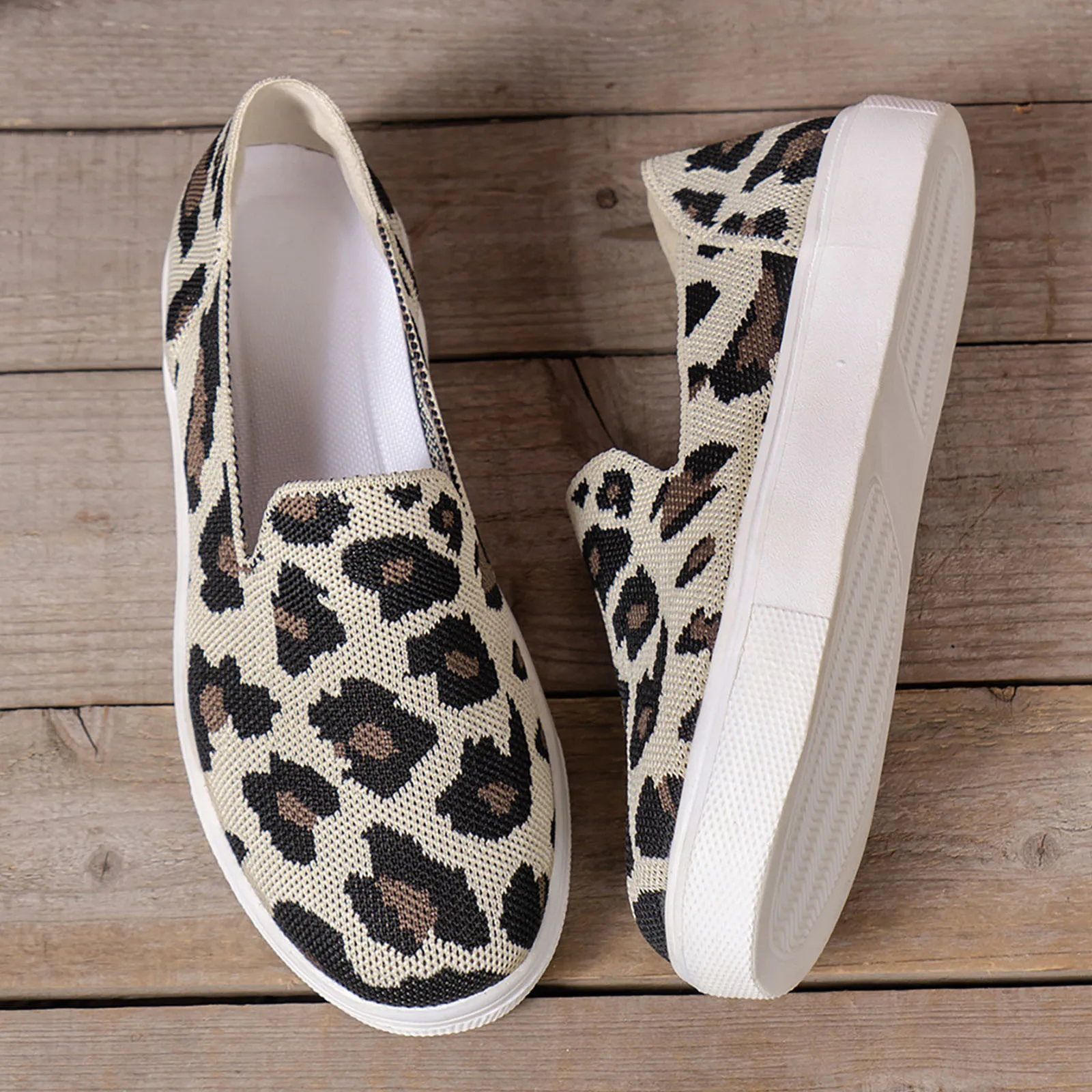 Women's Shoes 2024 Summer Thick Sole Shoes Leopard Pattern Sexy Mesh Flats Shallow Mouth Casual Single Walking Mesh Flat Shoes