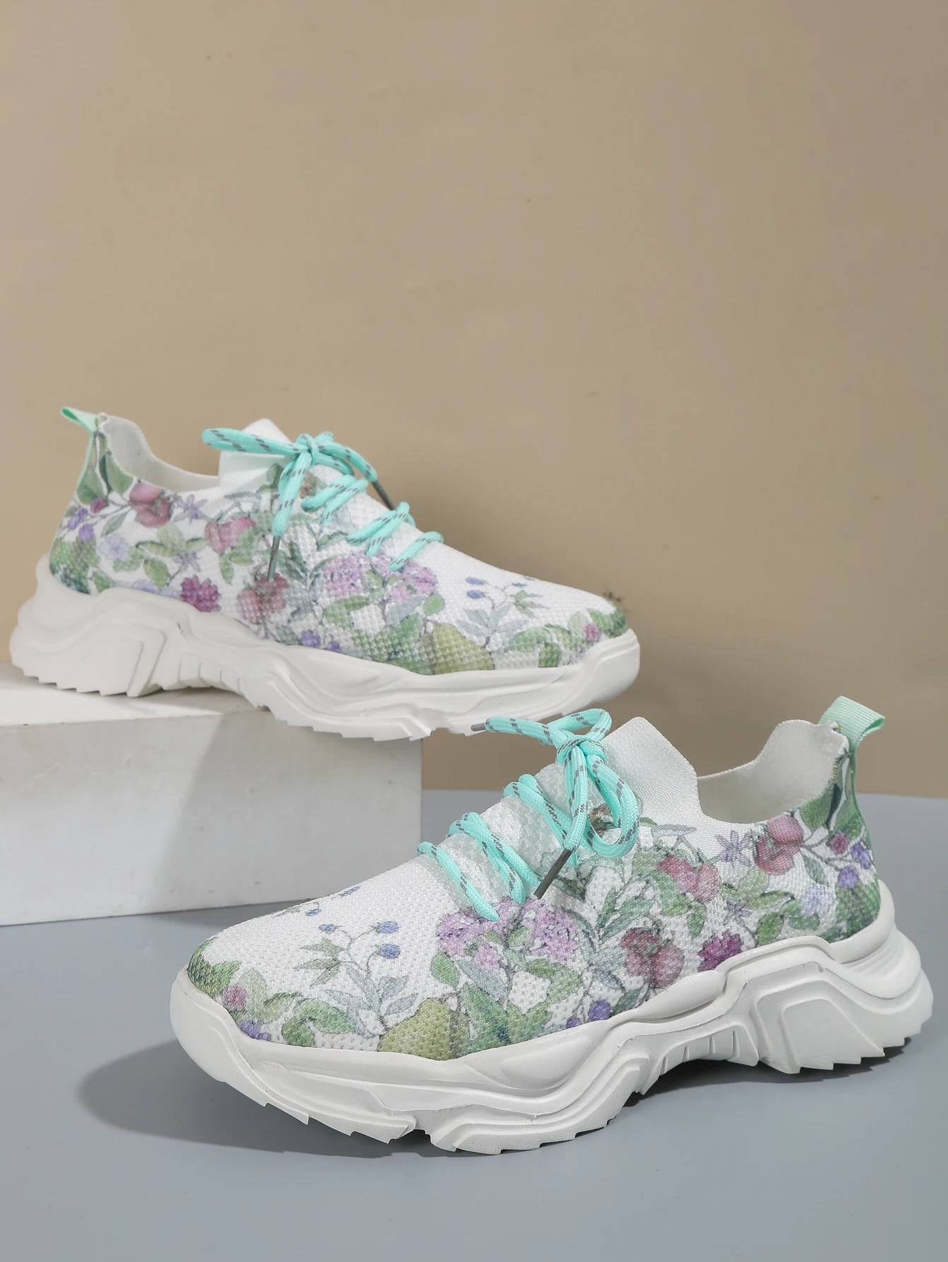 Women's Shoes on Sale 2023 Lace Up Women's Vulcanize Shoes Fashion Printing Women's Casual Shoes New Round Head Mesh Sneakers