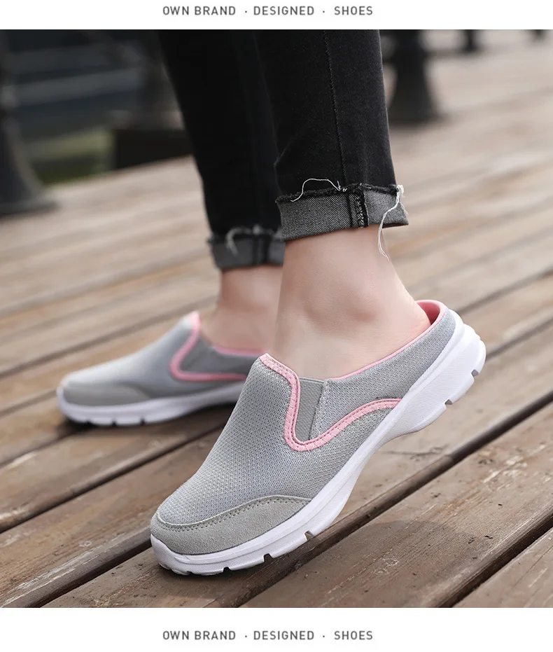 Women's Shoes Plus Size Casual Half Support Single slippers Flat Bottom One Kick Loafers Mesh Breathable Sandals Without Heels
