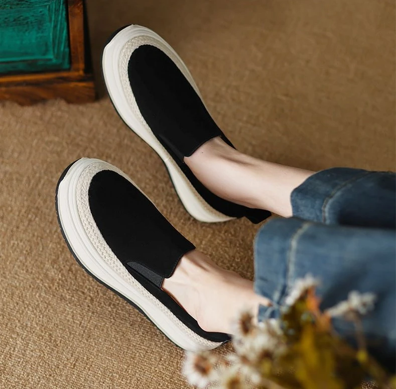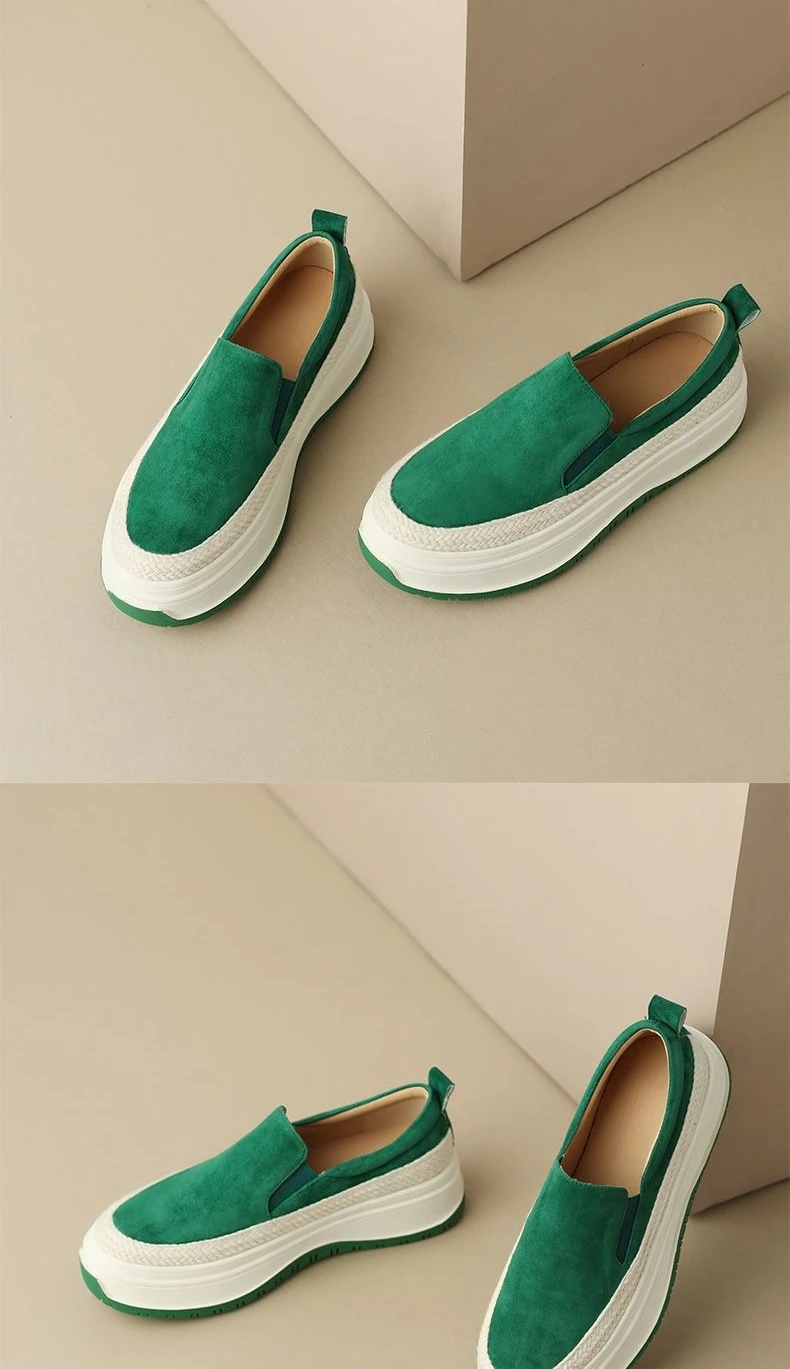 Women's Shoes Slip on Green Female Footwear Loafers High Platform Free Shipping and Low Price Fashion 2024 Vulcanized for Offer