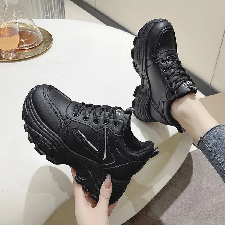 Women's sneakers fashion womens casual shoes versatile platform shoes solid outdoor sneakers shoes lace-up zapatillas de deporte