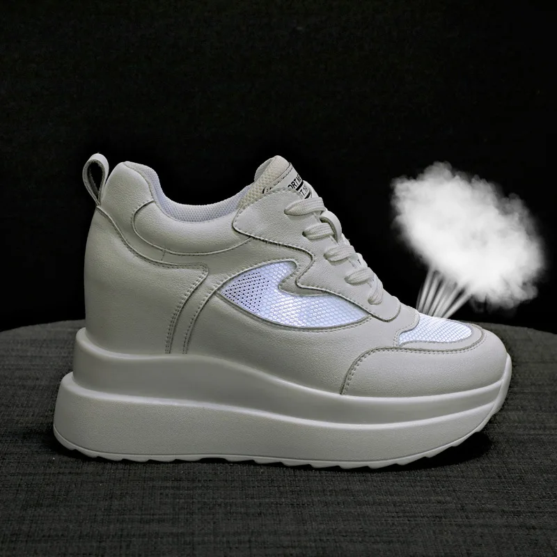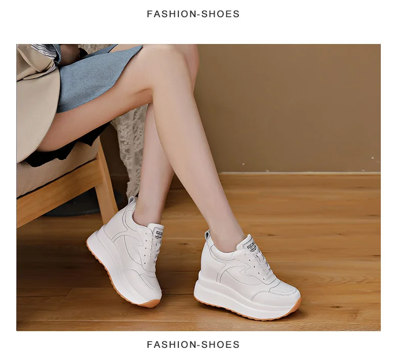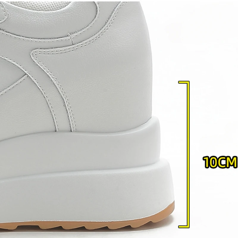 Women's Sneakers Genuine Leather Womens Casual Shoes Thick Sole Increase Height 10cm Women Sneakers Breathable Shoes Botas Mujer