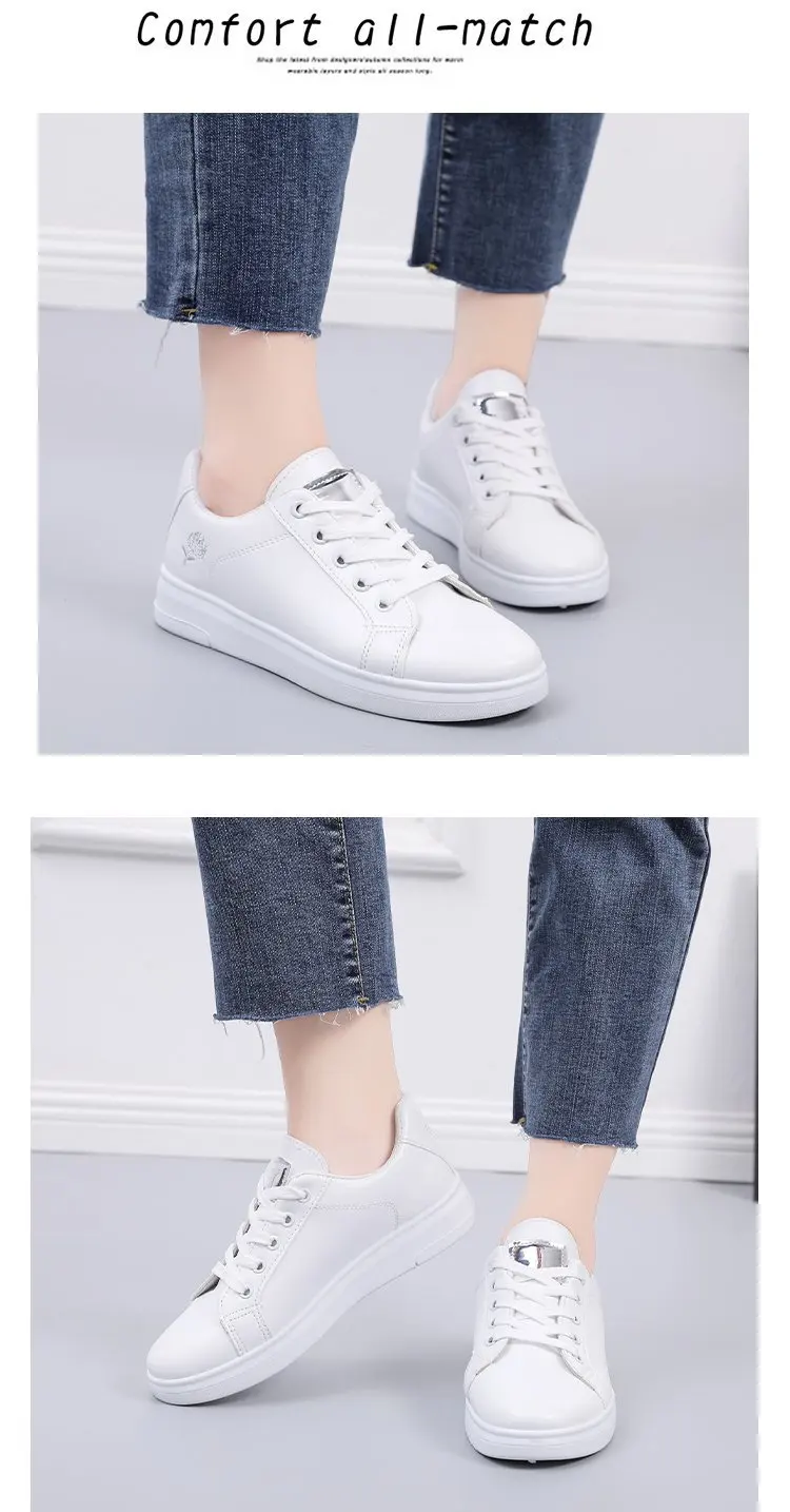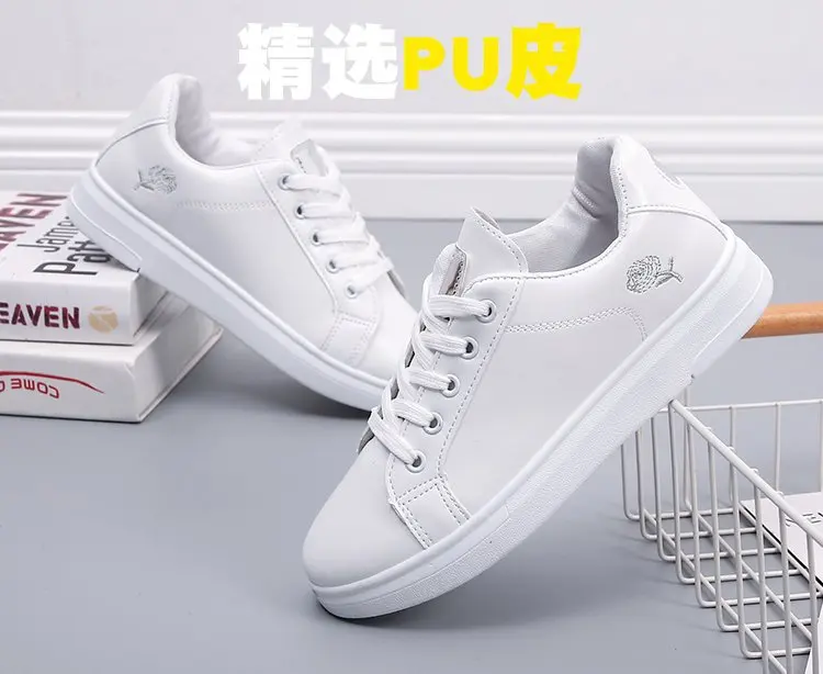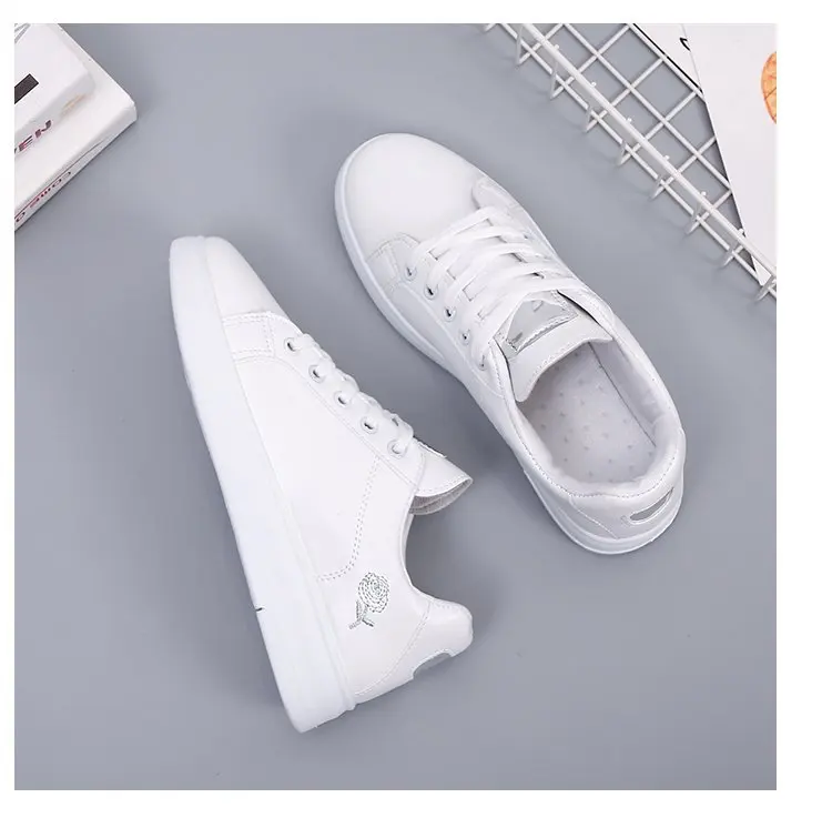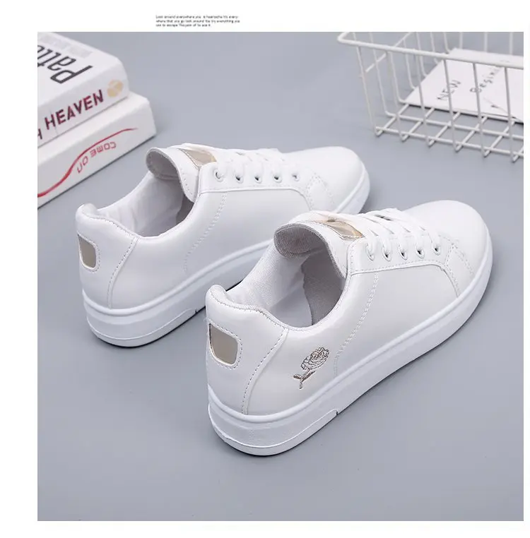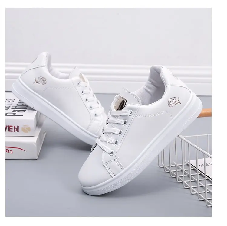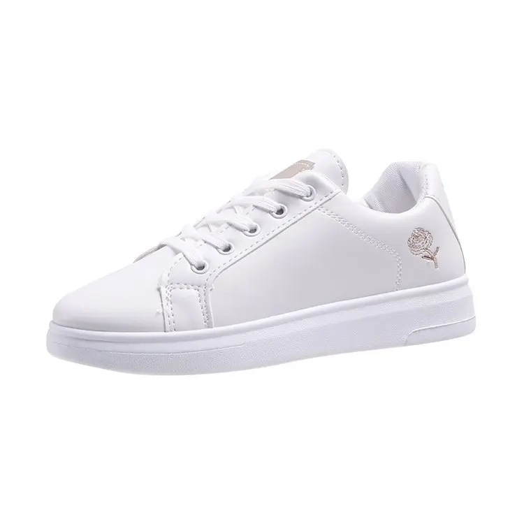 Women's Sneakers PU Leather Thick Bottom Lace Up Board Shoes Embroidered Flower Outdoor Running Sports Casual Versatile 2024