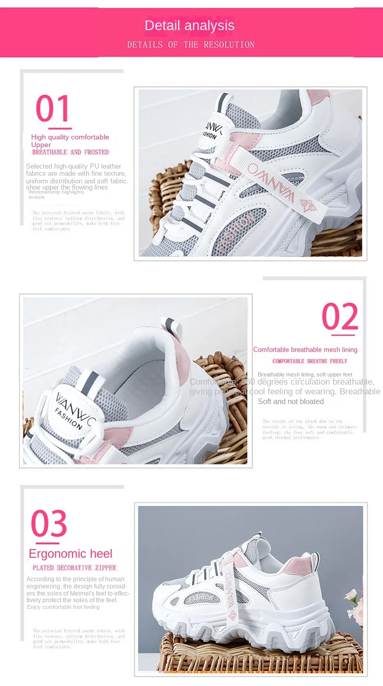 Women's Trainers New Chunky Sneakers Women Breathable Mesh Casual Shoes Sneakers Tennis Female Platform Lace Up Vulcanized Shoes